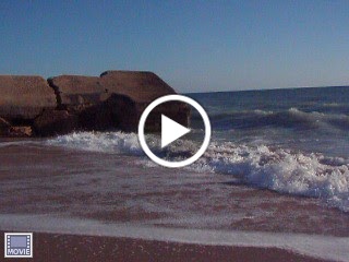 El bunquer, sumergido parcialmente. Que cada vez esta más escorado debido a la acción del mar.
